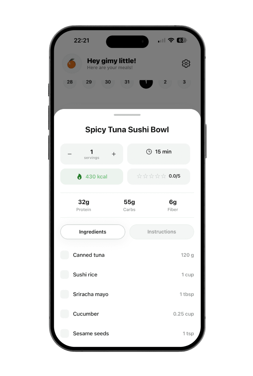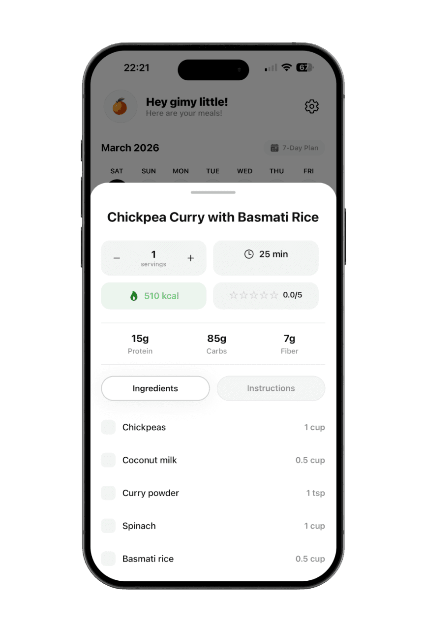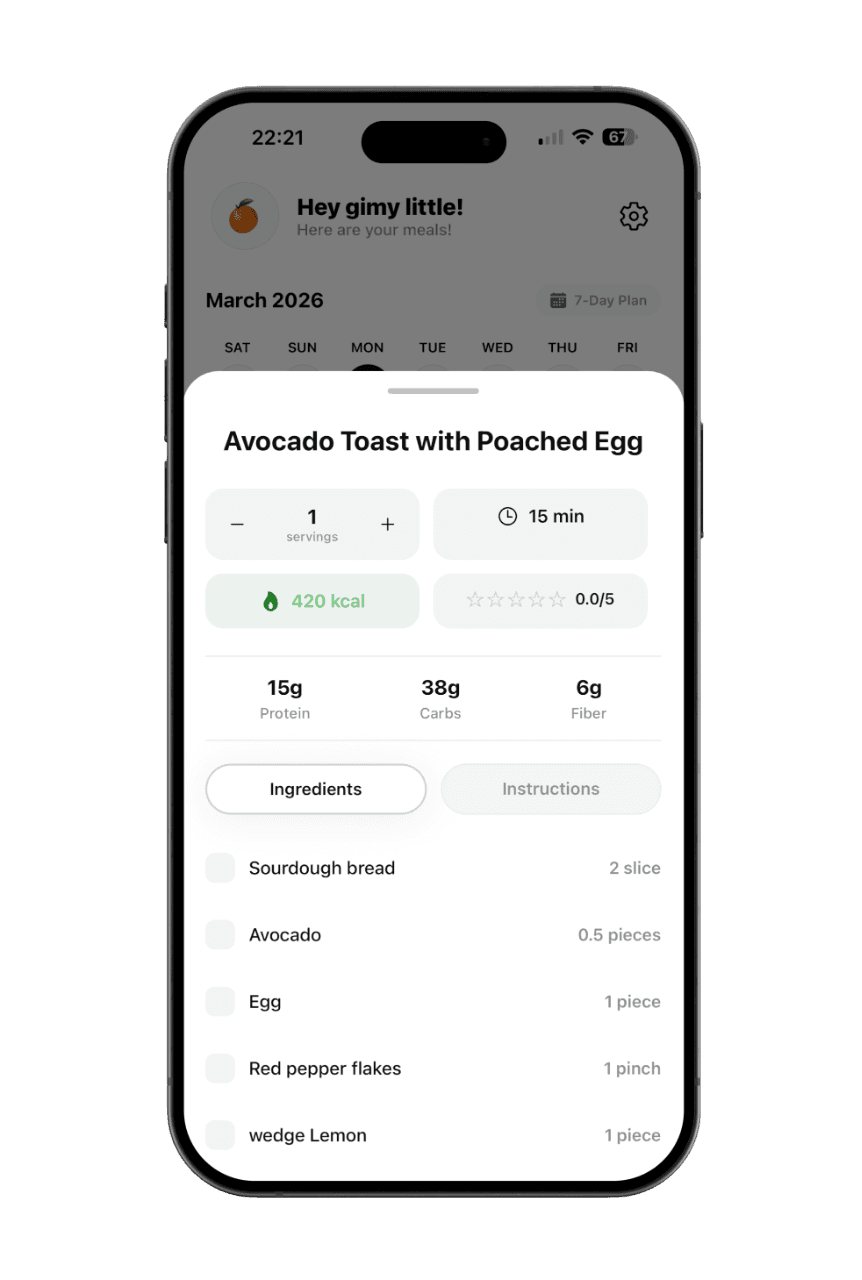 Your personalised weekly meal plan, generated by AI in 10 seconds.
