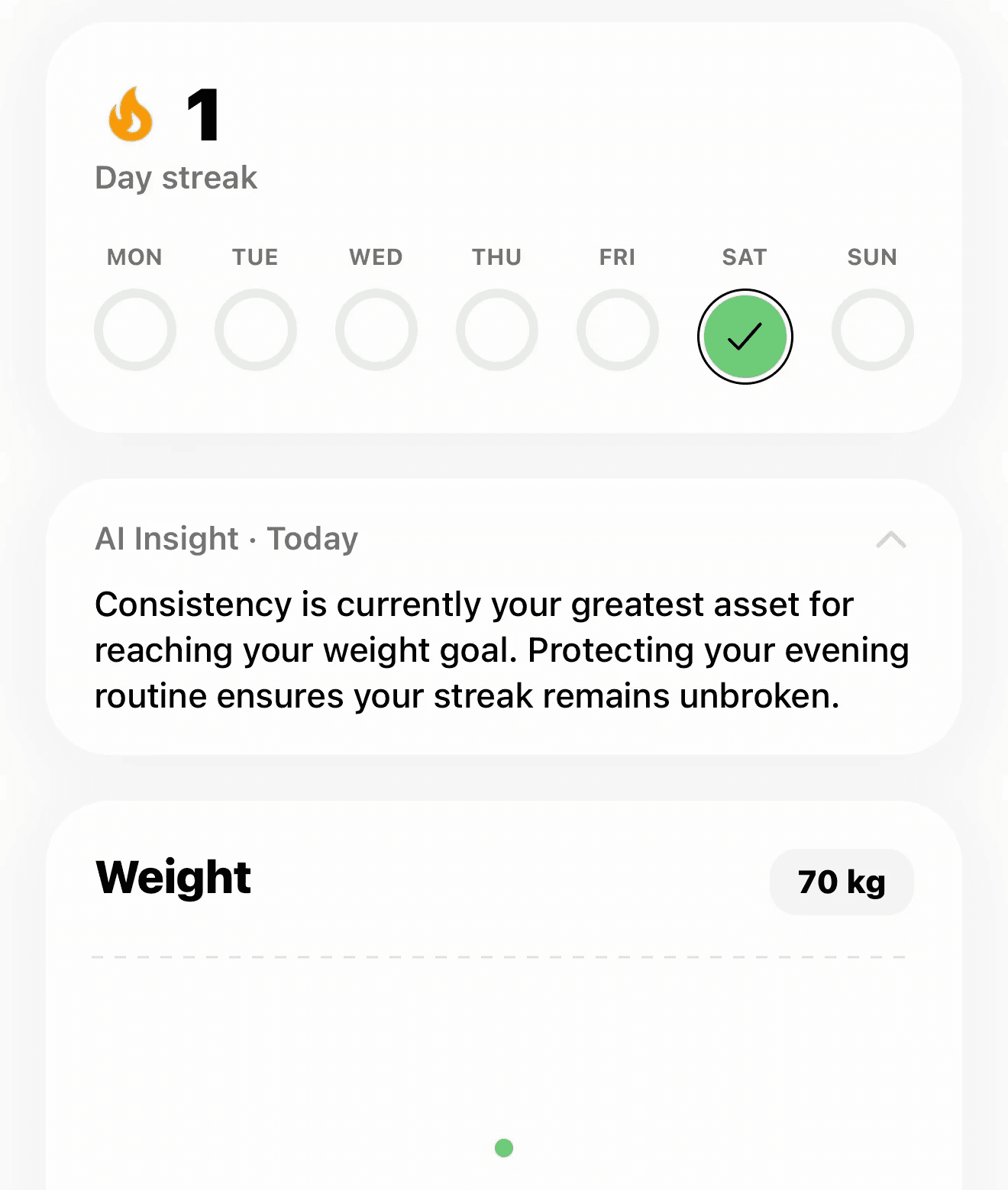 Sync with real health data: steps, calories, sleep. Your plan adapts automatically.